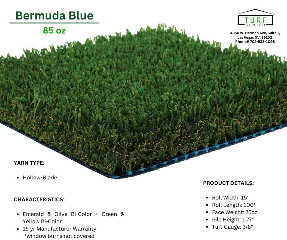 Proper care keeps Bermuda blue grass lush and healthy year-round. It requires regular mowing, fertilization, and watering.