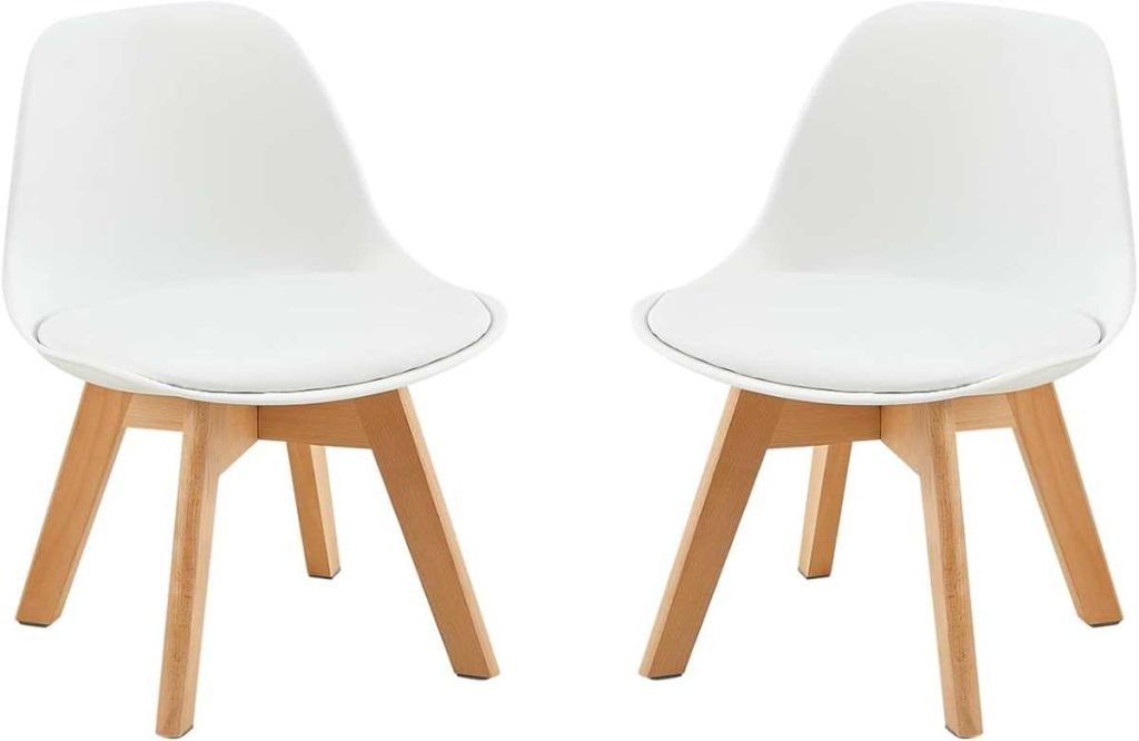 This set of two white children’s chairs brings a touch of modern design to any kids’ space. The combination of PP+PU material with solid wooden legs ensures both comfort and durability. These chairs are designed for practical use, making them a fantastic addition to a playroom or study area.