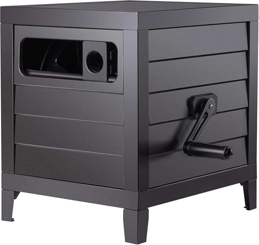 Customer Review: Excellent addition to one’s garden. We use it to unwind and wind up our 100′ drinking water safe garden hose. What a nice, easy and useful tool this is.Our old hose reel box had to be trashed, when the handle broke off —- and shame on the company for no longer selling replacement parts (boo).Should have got this hose reel box ages ago. Just love it. Especially love that the top opens up. Sometimes the hose end gets sucked back into the box and being able to open the top is a must.Have to say, though: Despite the fact that this hose reel box (we got it in brown) is less than six months old, the top of it is already fading and looking kind of worn. Combination of sunlight and water, it looks like. We keep ours in full sun, but I don’t remember our other hose reel boxes (also all in full sun) starting to look “old” so early on in their lives.That said, all these months later and the mechanism still rolls very smoothly and easily.