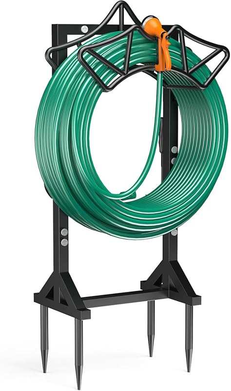 Customer Review: Well engineered, solid construction, good paint job, properly soldered joints, no sharp edges or burs, thick ground spikes. quick and easy assembly.I have a lot of heavy duty garden hoses at various locations on our property. I prefer not to leave the hoses curled up on the ground because they get so grody. Since moving to rural Florida (zone 9b) a few years ago, I have gone through my fair share of hose stands. Some started to fall apart soon after setting them up. Issues included skinny, unstable ground spikes and poorly designed stands that used only one bolt to secure joining poles. As soon as I put one hose on, the joints would start to shift and the entire frame would tilt forward. My best and favorite stand held up well for 2 years until Hurricane Milton breezed by. I forgot to remove the hose and the gale force winds caused the thick supporting pole to snap in two at the base. The JUNYIYOUO Garden Hose Holder is the garden solution I need to replace it.If you look at the product page photos, you will see each pole section is joined together with two bolts. The threaded slots and bolts are an exact match – no wiggle room, no shifting. The hose holder is equally sturdy. I dragged over the two nearest garden hoses – a thick, heavy duty 110′ and another 75′ – and loaded them onto the hose holder. Didn’t even flinch or dip under the weight. The loaded garden hose stand has been up several days and exposed to wind and rain. No sagging or leaning. The JUNYIYOUO Garden Hose Holder is the best and sturdiest stand I’ve ever owned. I’ve temporarily set up the stand out in the open to have the hoses easily accessible while setting up my raised garden bed irrigation systems. When done, the stand will be moved to an area protected from the sun and wind.Note: The product page shows the holder with a skinny hose giving the impression that the stand is taller than it is. The clearance between the base of the holder and the ground is ~31″. I loaded my hoses as as is so they touch the ground. The JUNYIYOUO Garden Hose stand is the just the right height and width. I speak from experience.
