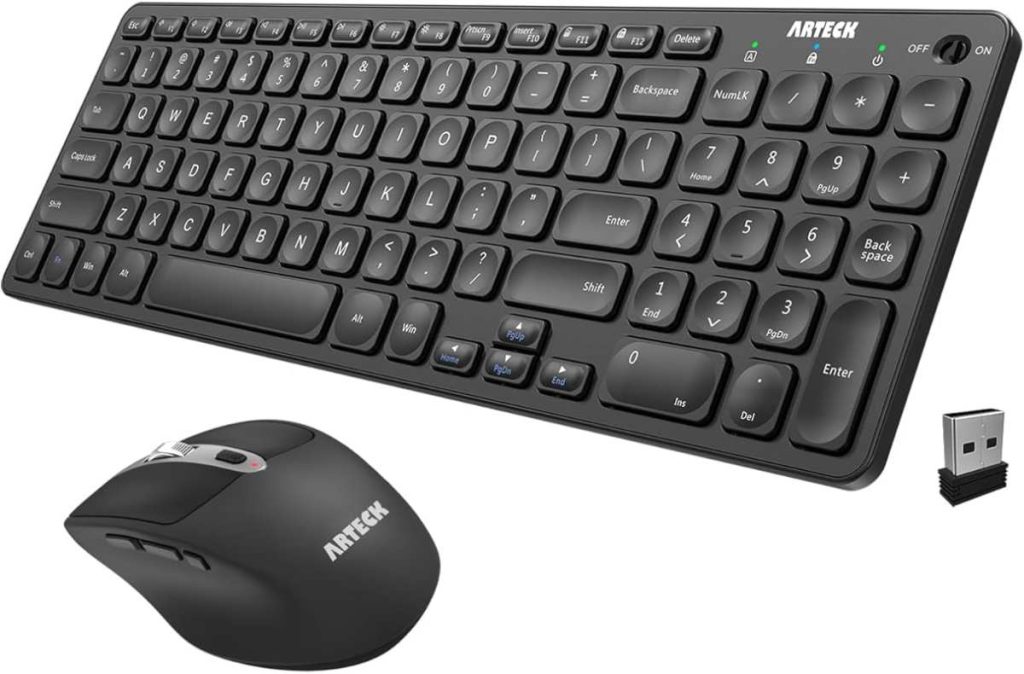 1. Arteck Ultra Slim Wireless Keyboard & Mouse Combo with Ergonomic Design and Rechargeable Battery for PC, Laptop, Windows