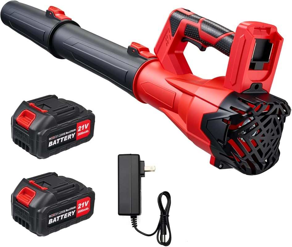 “I recently purchased this cordless leaf blower in the yellow and black color, and it looks very nice in person. The blower is quite powerful and more than sufficient for my small yard and sidewalk. It comes with two batteries, which is very convenient, and the batteries are durable enough for my typ.”