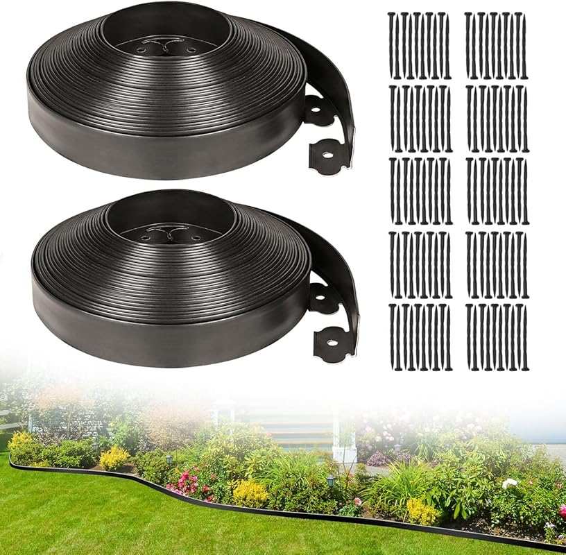 The JERIA 2-inch tall 100 ft garden edging kit delivers exceptional value with its durable plastic construction and 120 included spikes. This landscape edging is designed to create clean, defined borders without the need for digging, making it perfect for DIY enthusiasts looking to upgrade their yard’s appearance quickly and affordably.