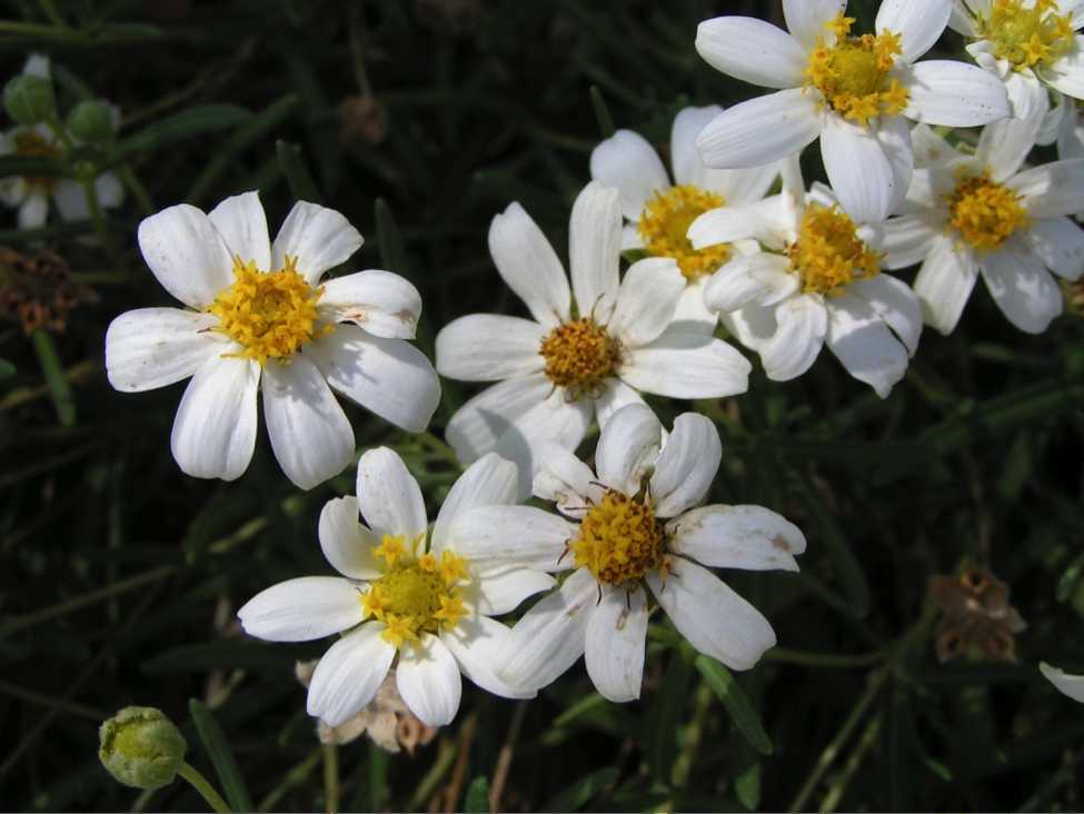 This perennial flower is known for its bright white petals and yellow centers. It blooms from spring to fall and attracts pollinators like butterflies and bees. Blackfoot daisies are drought-resistant and can grow in poor soil.