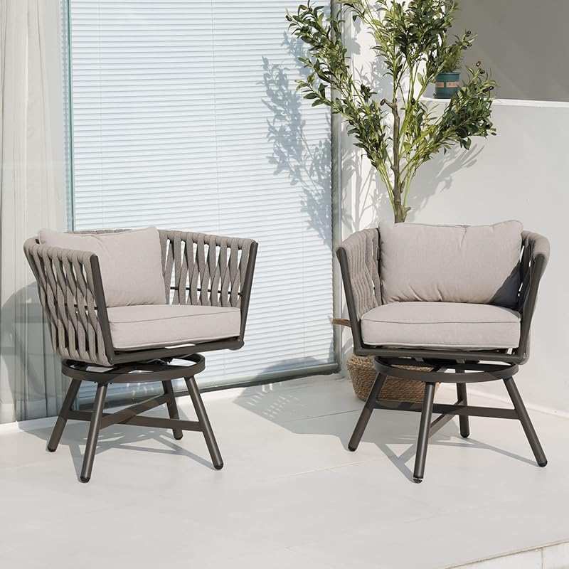 1. Modern Gray Rope Wicker Swivel Chairs Set of 2 with Cushions for Patio