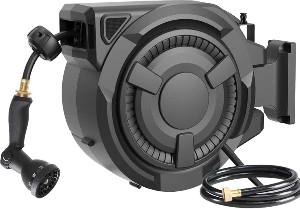 When choosing the best retractable garden hose reel, we look at several key features that make a real difference in daily use. The auto-rewind mechanism is crucial; it should be smooth and controlled, not a sudden snap that can be jarring or even dangerous. We also pay close attention to the hose length and diameter. A longer hose is great for larger yards, while a wider diameter (like 5/8″) means better water flow, which is essential for efficient watering and using tools like water hose sprinkler systems. Durability is paramount – we check the materials used for the hose and the reel’s housing, looking for weather-resistant and robust options. Ease of installation and a reliable locking system that holds the hose at any length are also non-negotiable. Lastly, features like a 180° swivel mount and included spray nozzles add significant value.