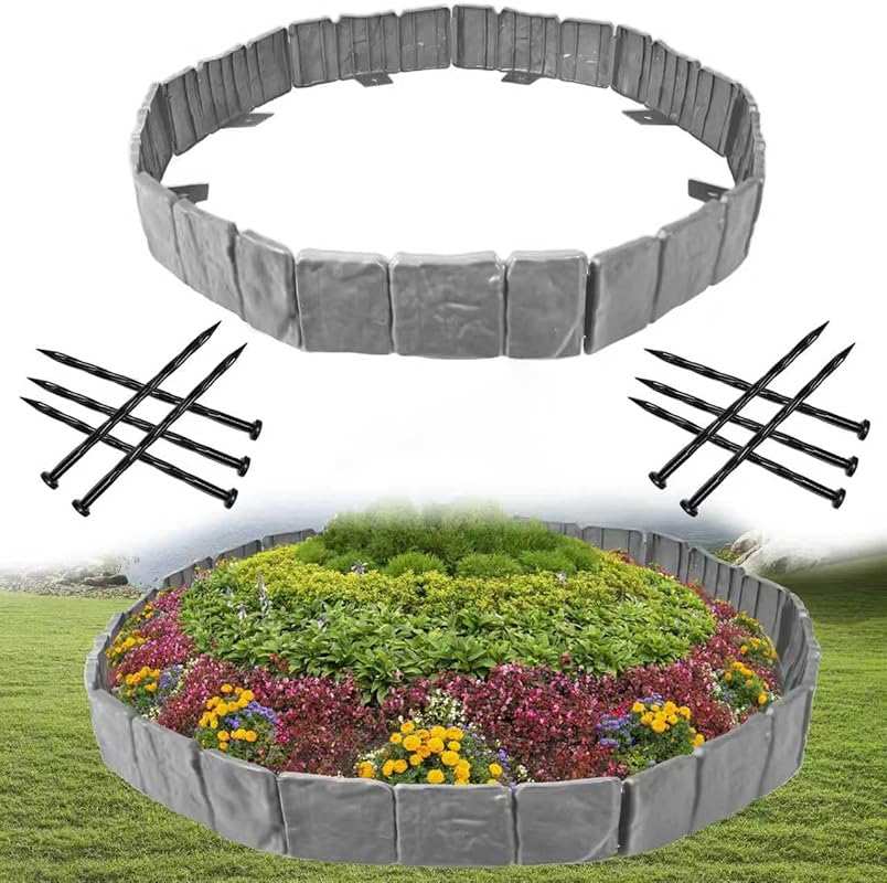 The durable plastic garden edging border with anchoring spikes for outdoor yard landscaping offers exceptional quality and performance. It’s designed to give you that classic stone fence look without the hassle of traditional stone installation. Plus, the included anchoring spikes make it super stable.