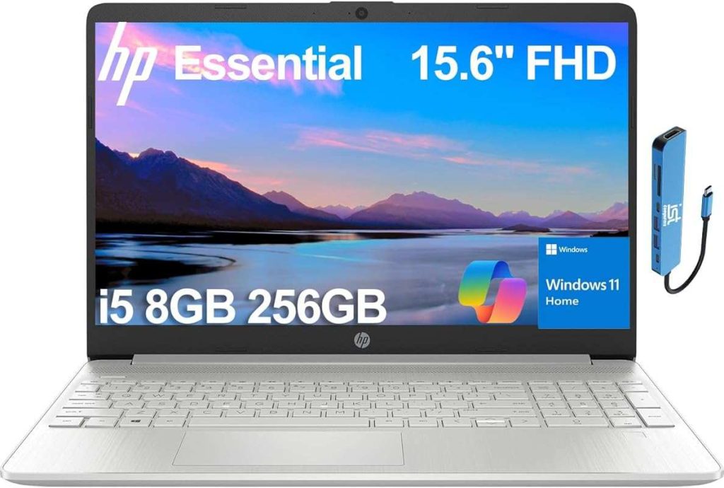 1. HP 15.6″ FHD Laptop with Intel Core i3-1215U, 8GB RAM, 256GB SSD, Silver, Windows 11 Home