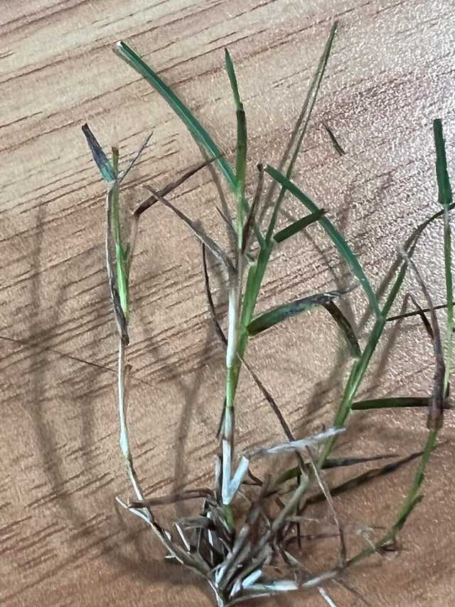 Check for visible pests or mold on the affected blades. Look at the soil health and drainage around the patches. Fungal infections often have a fuzzy or moldy appearance, while pest damage may show signs of tunneling or chewed grass.
