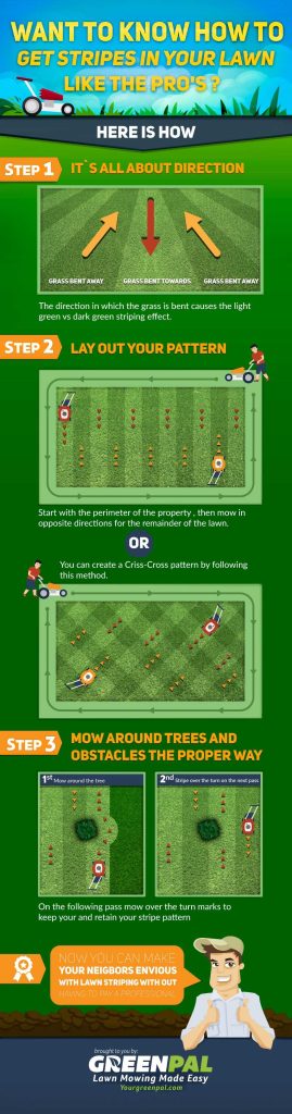 Lawn striping refers to the process of mowing your grass in a specific pattern to create stripes across your turf. This is accomplished by bending the blades of grass in different directions, which affects how they reflect light. The key to a perfect stripe is having a healthy lawn that is well-maintained.