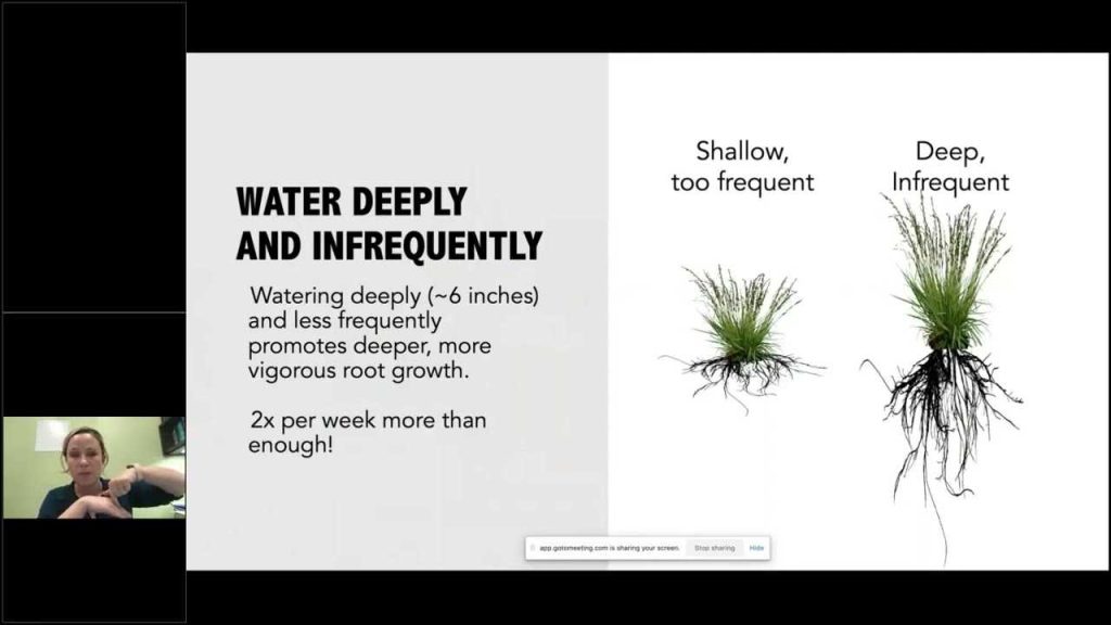 Plant roots grow where water is most available. Deep watering encourages roots to extend downward, reaching water reserves farther below the surface. Shallow watering tends to encourage roots to stay close to the surface, making plants vulnerable during dry spells.