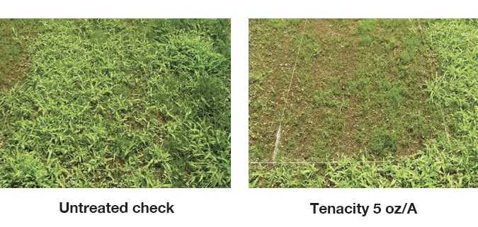 Studies indicate that Tenacity has limited control over Bahia grass. Trials show that while it can cause some damage, Bahia often recovers quickly, especially if not combined with other methods.